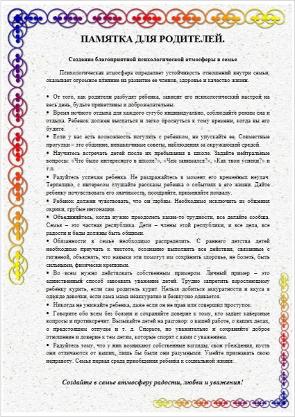 памятки для родителей